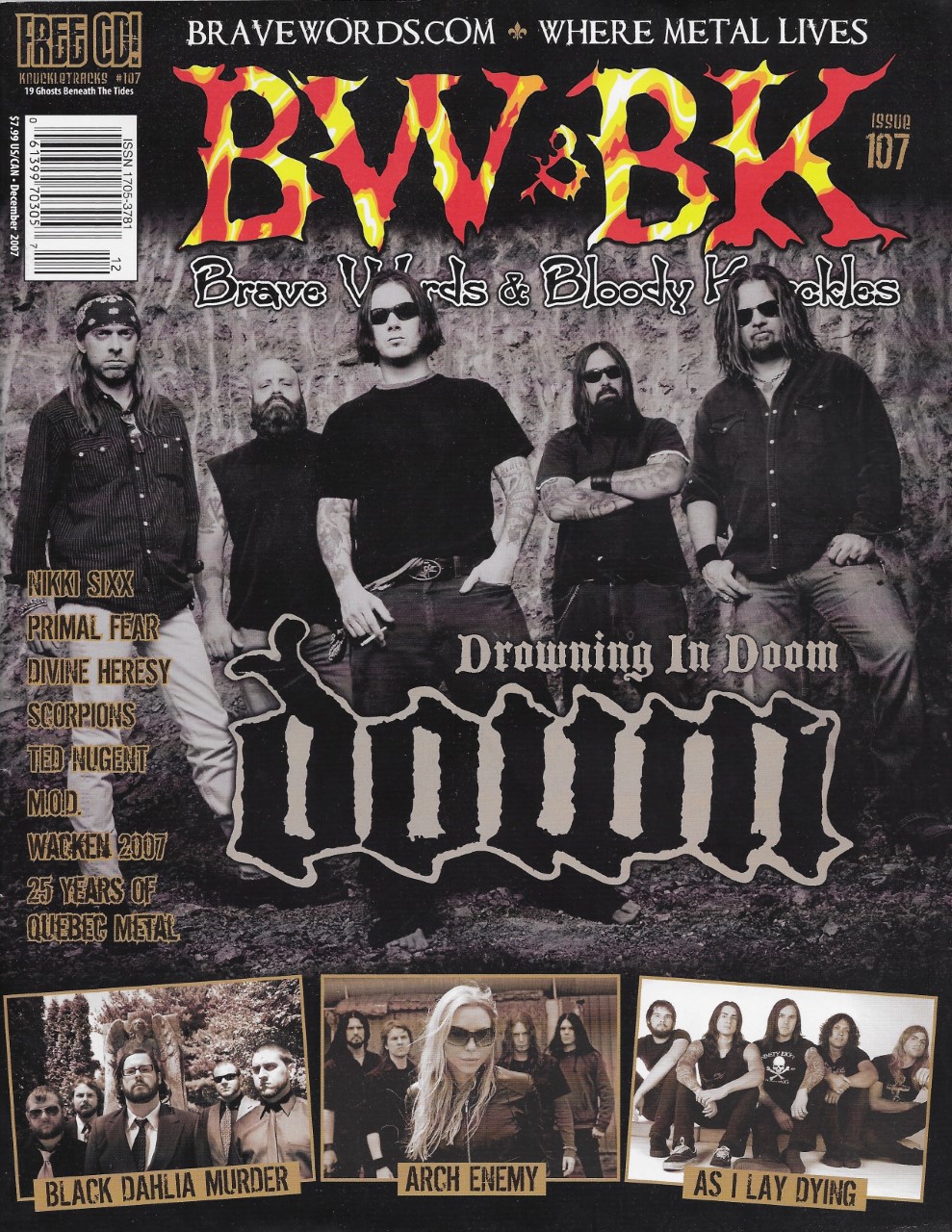 The December 2007 issue contains supergroup DOWN on the cover! Major features of THE BLACK DAHLIA MURDER, ARCH ENEMY, AS I LAY DYING, NIKKI SIXX, PRIMAL FEAR, SCORPIONS, TED NUGENT, fill this issue up!