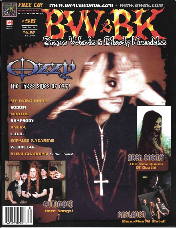 The Prince Of Darkness OZZY OSBOURNE peeks out the December 2001 issue! Check out awesome features with ENTOMBED, ARCH ENEMY, ENSLAVED, RHAPSODY, and more!