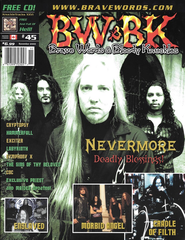 Major US metallers NEVERMORE take the November 2000 cover! Read some cool features with CRYPTOPSY, HAMMERFALL, EXCITER, SYMPHONY X, CORROSION OF CONFORMITY, CRADLE OF FILTH, and others!