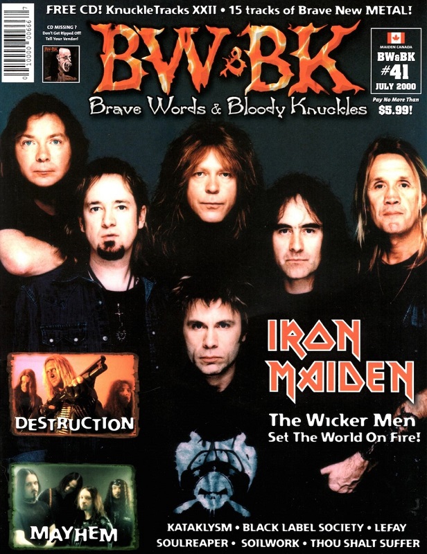 ULTRA RARE! A reunited IRON MAIDEN with BRUCE DICKINSON covers the July 2000 mag! Read some stories with DESTRUCTION, MAYHEM, KATAKLYSM, BLACK LABEL SOCIETY, and more!